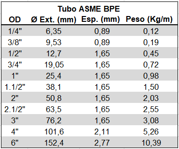 ASME BPE (OD / polegada)ASME BPEASTM A270 S1Bioprocesso e farmacêutico